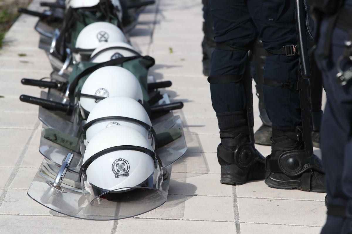 Στον περιβάλλοντα χώρο η αστυνομική παρουσία είναι ισχυρή, με περιπολικά και κλούβες των ΜΑΤ να βρίσκονται κοντά, με μερικά μέτρα απόσταση.