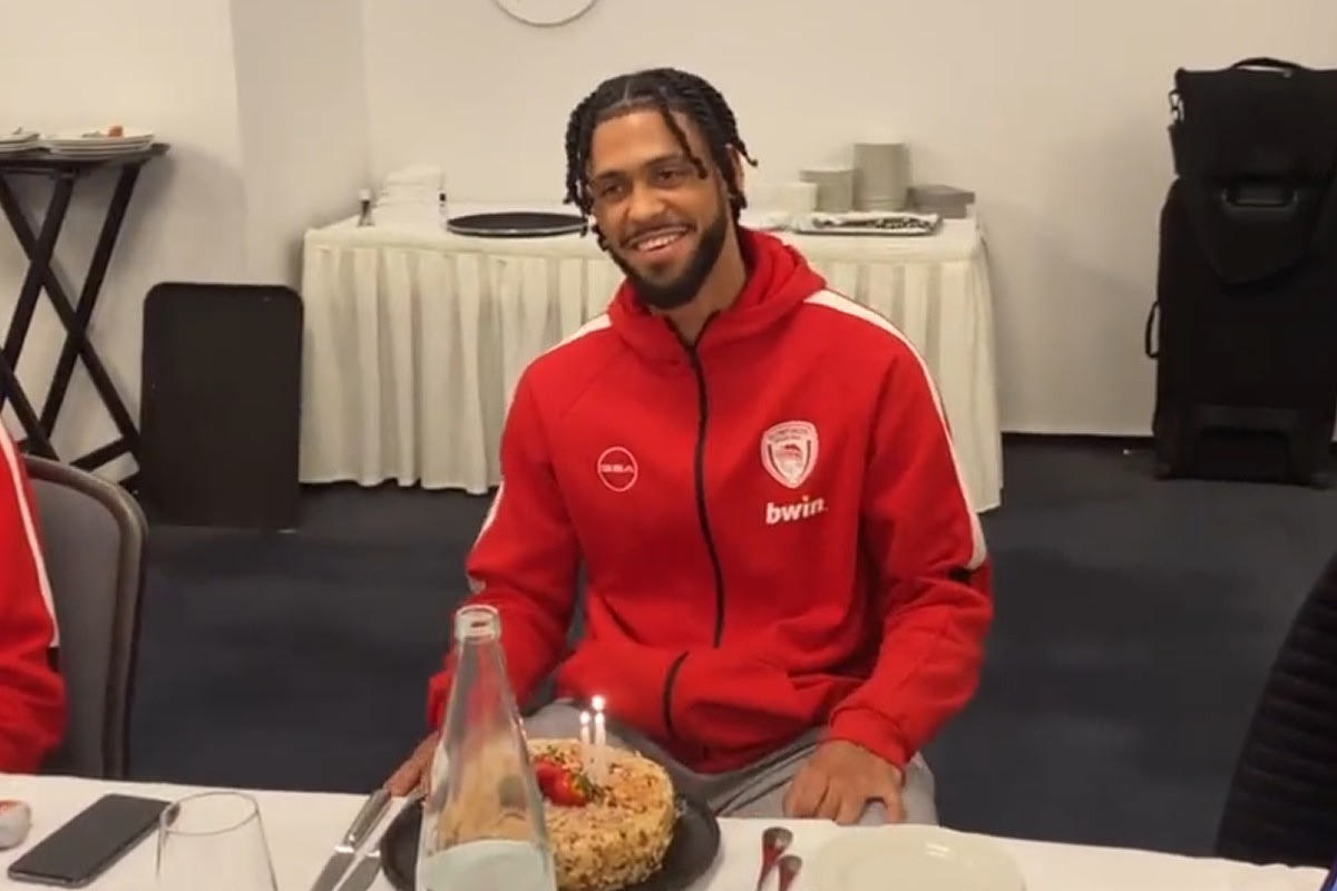 Με τους “ερυθρόλευκους” να βρίσκονται στο ξενοδοχείο για το δείπνο της ομάδας, ξαφνικά εμφανίστηκε μία τούρτα, με τους συμπαίκτες του ομογενή γκαρντ να του τραγουδούν “Happy Birthday”.