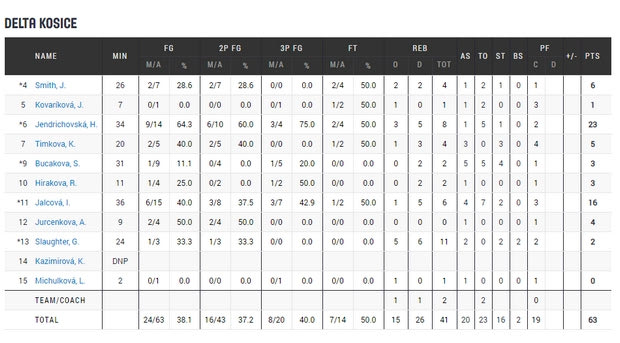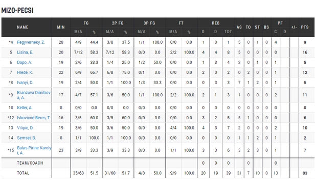 Τα αναλυτικά στατιστικά των παικτριών της ομάδας σε εκείνη την διοργάνωση (Πηγή FIBA):