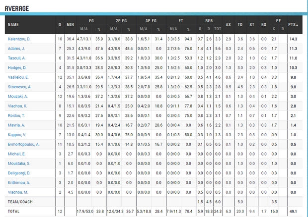 *Πρώτη σκόρερ της ομάδας στην διοργάνωση ήταν η Τούλα Καλέντζου με 14.3 πόντους μέσο όρο, με την Τζόρνταν Άνταμς να ακολουθεί με 11.3 πόντους και την Αταλάντη Τασουλή να έχει 11 πόντους μέσο όρο.