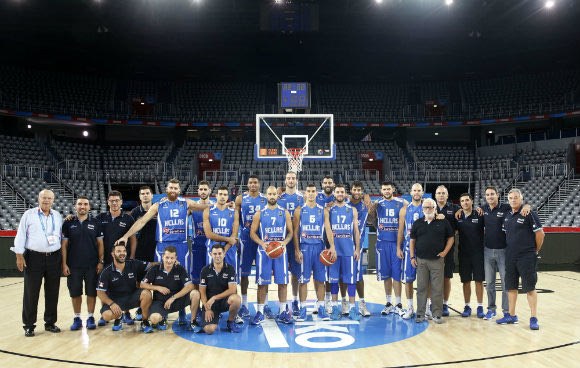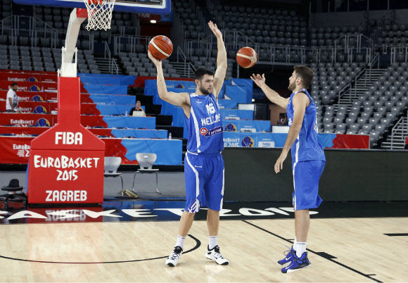 Οι παίκτες και το τεχνικό τιμ της Εθνικής φωτογραφήθηκαν στην Arena Zagreb, παραμονή της αναμέτρησης με τα Σκόπια (5/9, 19:00) στην πρεμιέρα του Γ’ ομίλου του Eurobasket 2015.