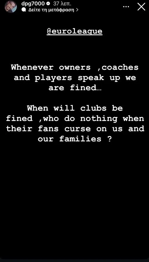 Ο Δημήτρης Γιαννακόπουλος απευθύνθηκε στην EuroLeague, μέσω ανάρτησής του στο Instagram, μετά τις έντονες αποδοκιμασίες που δέχθηκε ο Εργκίν Αταμάν και οι παίκτες του Παναθηναϊκού από τον κόσμο της Μακάμπι Τελ Αβίβ.
