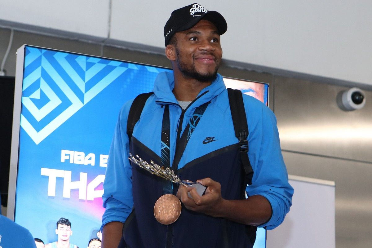 Ο Γιάννης Αντετοκούνμπο κατά την αποχώρησή του από το αεροδρόμιο δήλωσε κουρασμένος, καθώς δεν έχει κοιμηθεί όλο το βράδυ, μετά τον μικρό τελικό με τη Φινλανδία.