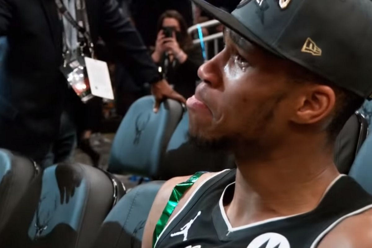 Ο Γιάννης Αντετοκούνμπο δακρυσμένος μετά την κατάκτηση του πρωταθλήματος