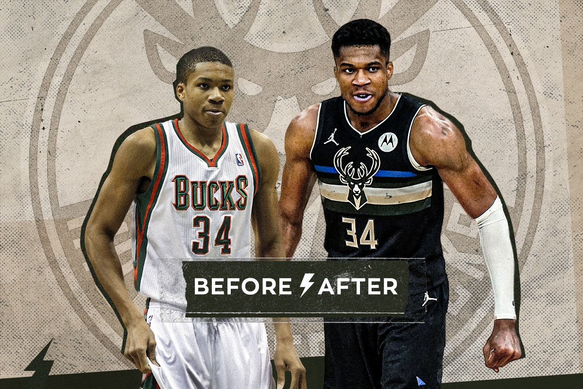 Σε 8 χρόνια ο Γιάννης Αντετοκούνμπο έβαλε 8 πόντους και 22 κιλά! Το DNA και το ακατέργαστο κορμί του ήταν η πρώτη ύλη, αλλά δεν αρκούσαν. Ήταν απαραίτητη η δουλειά στο γυμναστήριο και η δική του αφοσίωση στο πρόγραμμα.