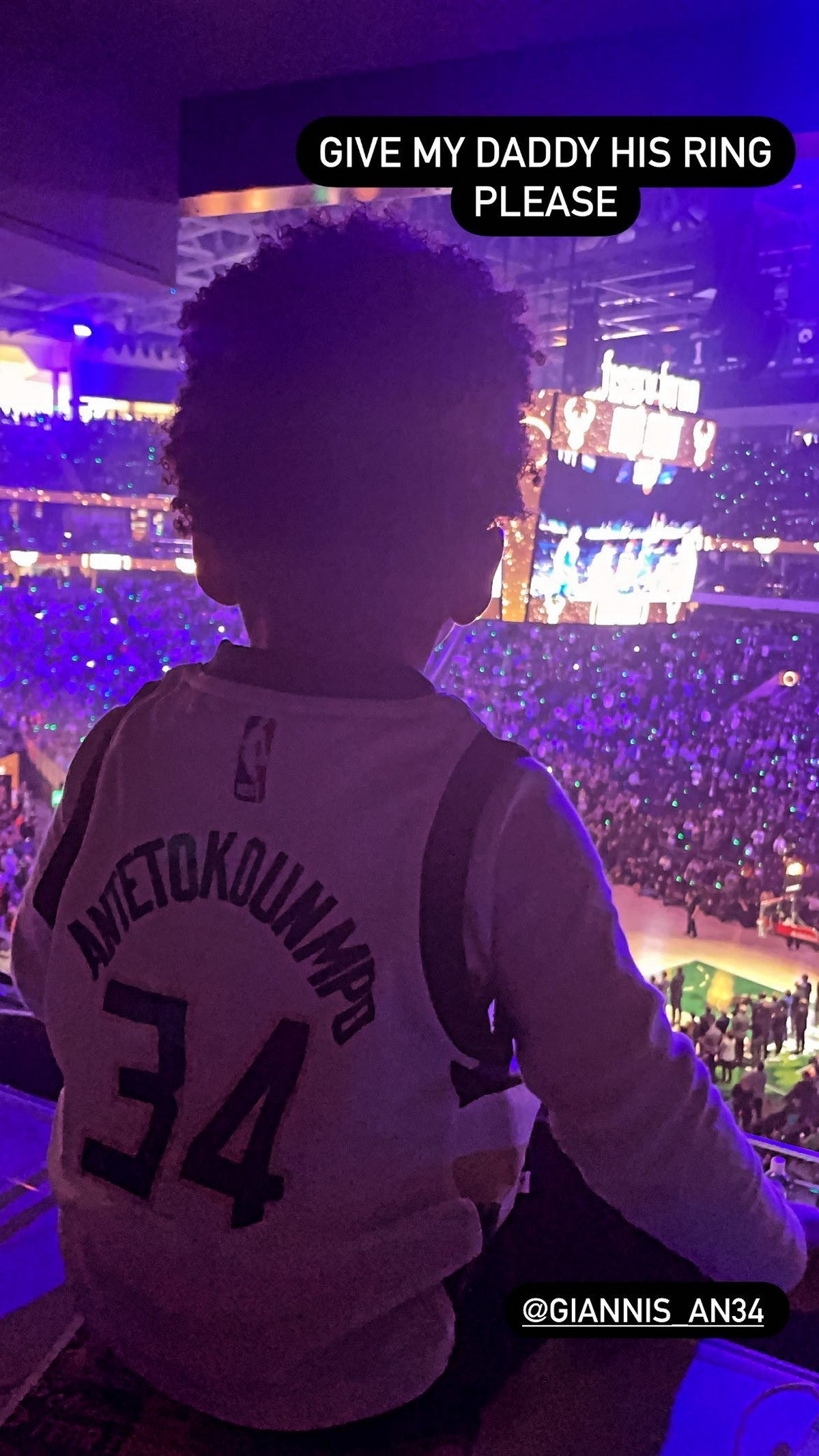 Η σύντροφος του Γιάννη Αντετοκούνμπο, Μαράια, βρέθηκε στο Fiserv Forum για να τον αγώνα με τους Νετς και κατά την διάρκεια της τελετής παράδοσης των δαχτυλιδιών ανέβασε μία υπέροχη φωτογραφία του μεγάλου τους γιου, Λίαμ, να παρακολουθεί τι συνέβαινε.