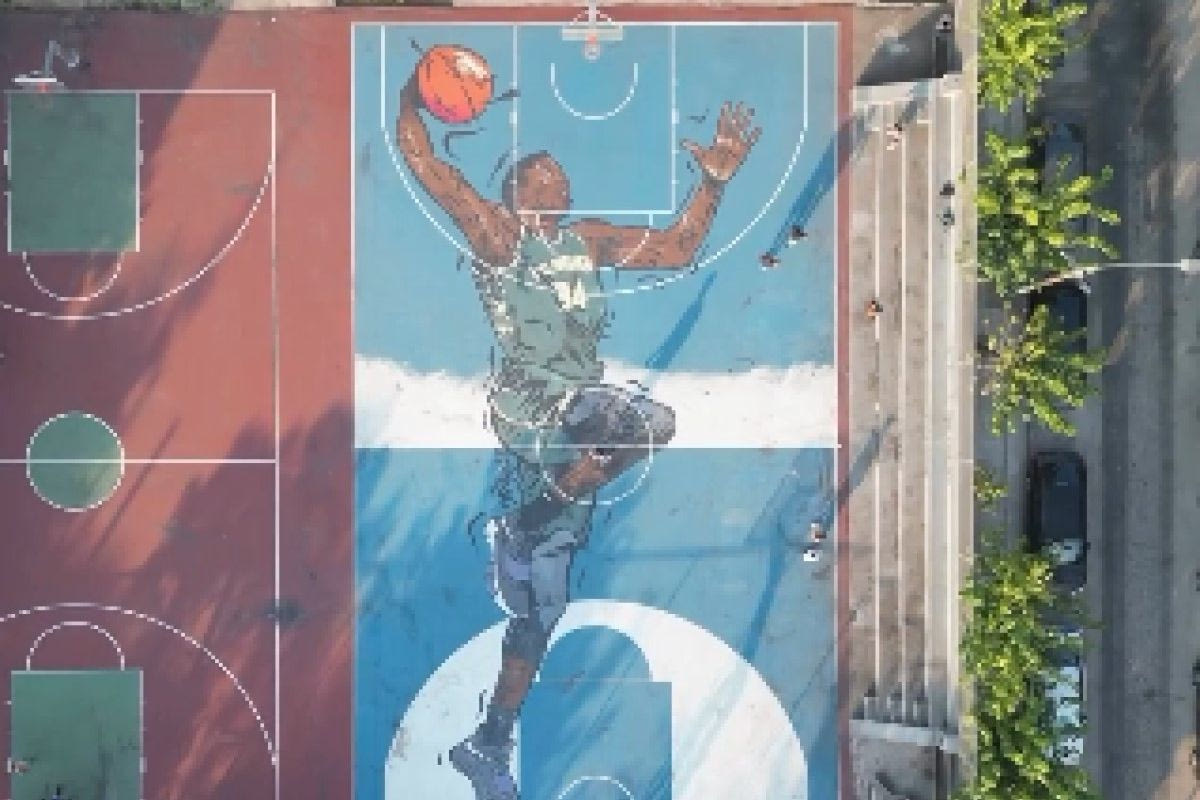 Το συγκεκριμένο ανοικτό γήπεδο, ανακαινίστηκε πριν από μερικά χρόνια, όταν απεικονίστηκε πάνω του η μορφή του Greek Freak με το αποτέλεσμα να είναι αν μη τι άλλο εντυπωσιακό.