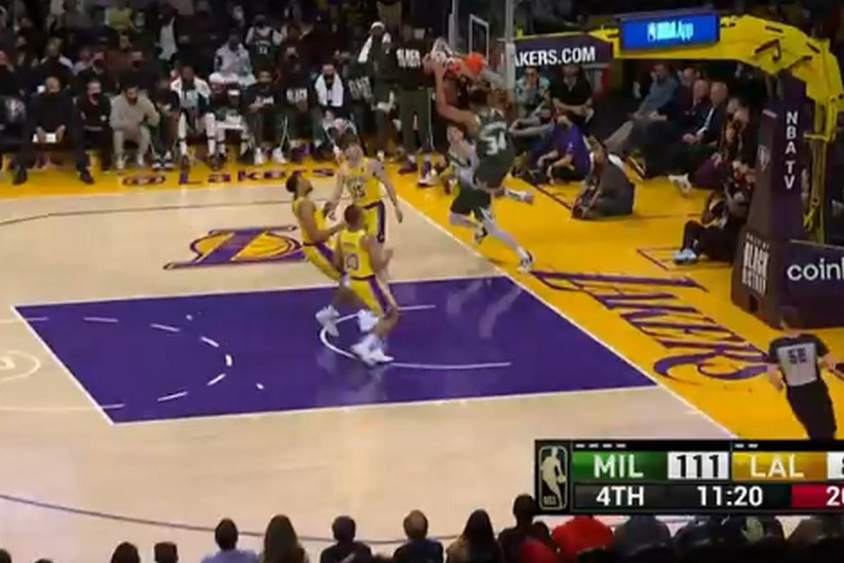 Ο Γιάννης Αντετοκούνμπο σηκώθηκε στον... Θεό και κάρφωσε θεαματικά στο καλάθι των Λείκερς σε αιφνιδιασμό των Μπακς έπειτα από ασίστ του Γκρέισον Άλεν.