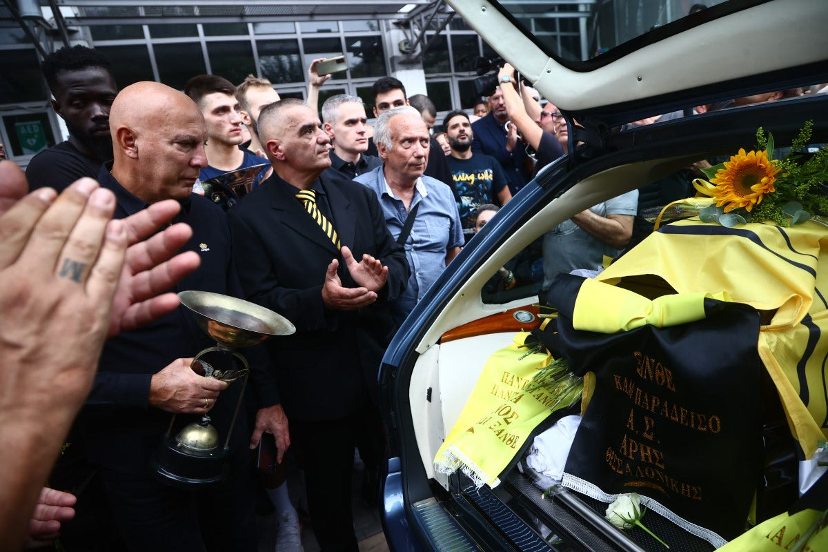 Ο φωτογραφικός φακός έπιασε μάλιστα τον Γκάνγκστερ του ελληνικού μπάσκετ, να στέκεται με λύπη δίπλα στο φέρετρο του “Ξανθού”, κρατώντας στην αγκαλιά του ένα από τα τρόπαια που κατέκτησαν μαζί, τα χρόνια που συμπορεύτηκαν στον Άρη.