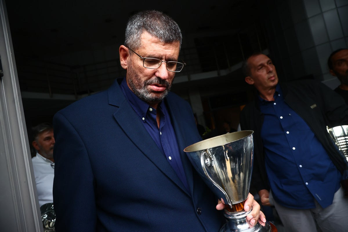 Ο σπουδαίος Χάρης Παπαγεωργίου – άλλοτε παίκτης του Γιάννη Ιωαννίδη και νυν πρόεδρος του Άρη – στο λαϊκό προσκύνημα για τον Γιάννη Ιωαννίδη.