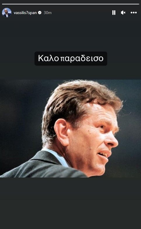 Ο Σπανούλης ανέβασε ένα story στο Instagram με μία χαρακτηριστική φωτογραφία του “Ξανθού” και το μήνυμα “Καλό παράδεισο”.