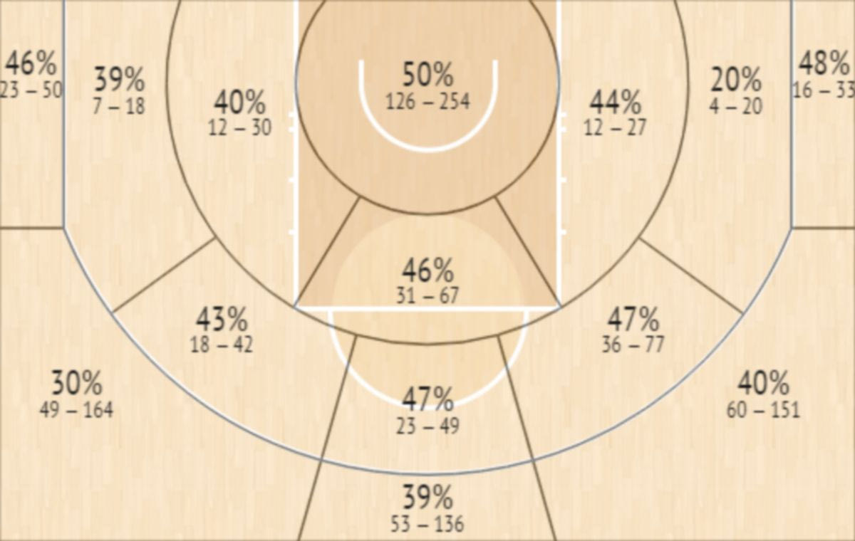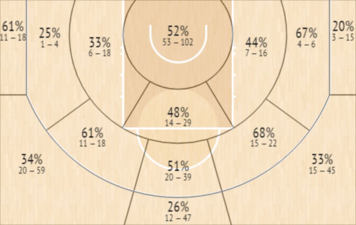 Το Shot Chart του Γιόγκι Φέρελ την τελευταία τριετία του στο ΝΒΑ InStat Scout