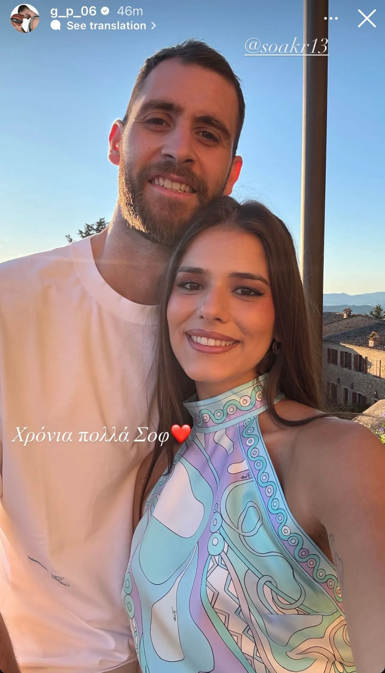 Μία όμορφη, προσωπική στιγμή μοιράστηκε με τους διαδικτυακούς του φίλους ο Γιώργος Παπαγιάννης, ο οποίος θέλησε να ευχηθεί δημόσια στη σύντροφό του, Σοφία Ακριτίδου, για τα γενέθλιά της. Ο διεθνής σέντερ της Αναντολού Εφές δημοσίευσε ένα τρυφερό στιγμιότυπο τους, συνοδεύοντάς το με μια λιτή αλλά γεμάτη αγάπη αφιέρωση: “Χρόνια πολλά Σοφ”.