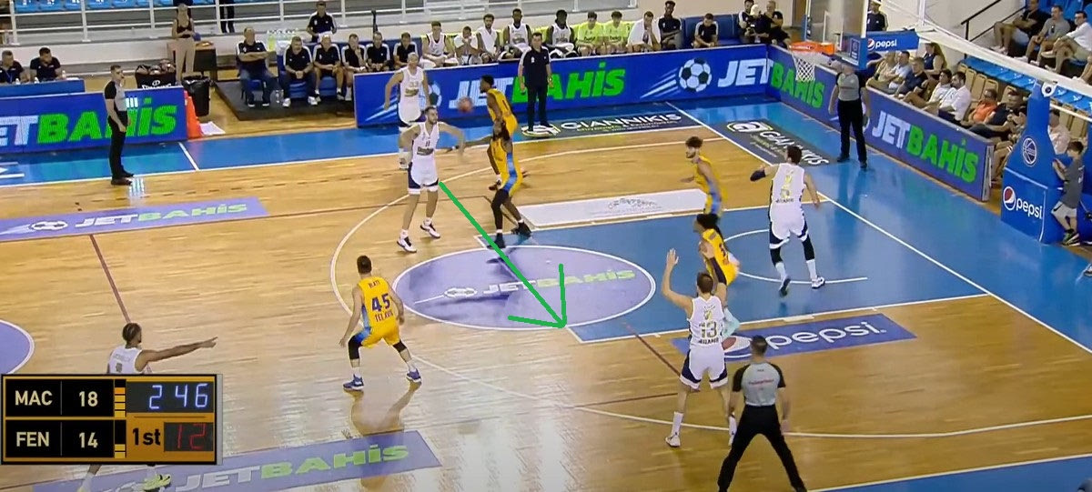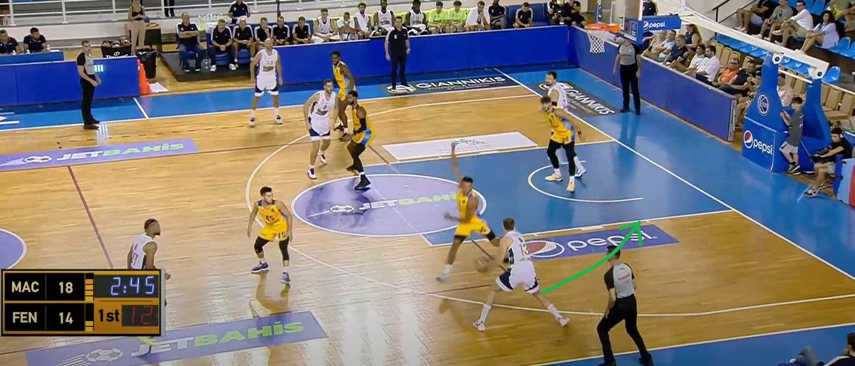 Η Φενέρ είναι μία ομάδα που γενικά αλλάζει τις άμυνές της στο Pick and Roll. Την περσινή σεζόν έπαιζε συχνά δυναμικό Hedge Out (ο ψηλός έβγαινε δυναμικά στον γκαρντ), άλλες φορές έπαιζε αλλαγές (κυρίως με τον Μότλι), αλλά και Flat (ή level, με τον ψηλό να είναι στο ύψος του σκριν) όταν στο παρκέ βρισκόταν ο Τζεκίρι. Είναι νωρίς να πει κάποιος αν ο Παπαγιάννης θα αμύνεται μόνο με αυτό τον τρόπο.