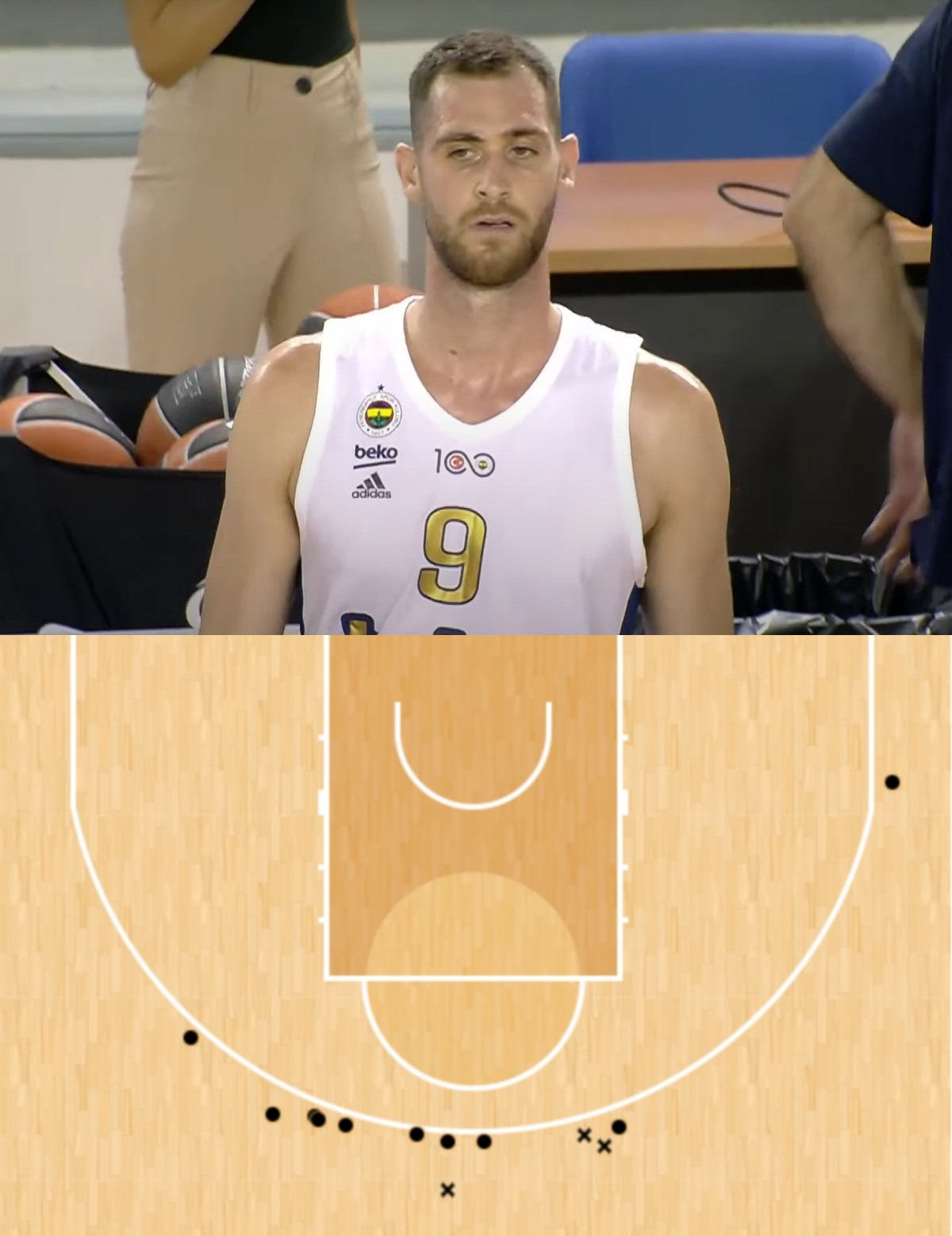 Σύμφωνα με το Hudl Instat, ο Παπαγιάννης έχει πάρει 6/9 τρίποντα σε καταστάσεις Catch and Shoot (66.6%) και 4/4 σε καταστάσεις Pick and Pop (100%)! Το δείγμα είναι σίγουρα μικρό, ωστόσο δείχνει μία τάση της Φενέρμπαχτσε και του Δημήτρη Ιτούδη σχετικά με το πώς θα αξιοποιεί με τον καλύτερο δυνατό τρόπο τον Παπαγιάννη.