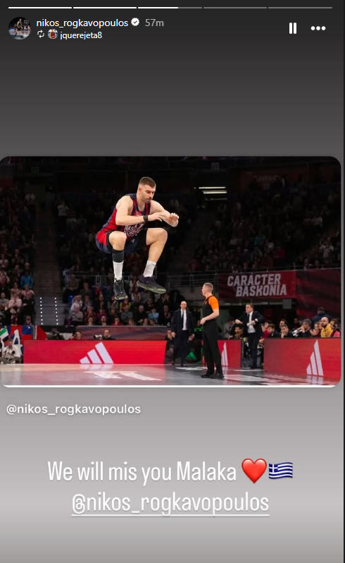 Με ένα story στο Instagram, έγραψε στα ελληνικά: “Θα μας λείψεις, μαλ@@@κα”, με τον Ρογκαβόπουλο να το κάνει repost, δείχνοντας την καλή σχέση που είχαν στις τάξεις του συλλόγου.