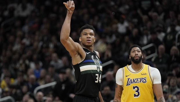 Ο Γιάννης Αντετοκούνμπο σουτάρει σε αναμέτρηση των Μιλγουόκι Μπακς με τους Λος Άντζελες Λέικερς