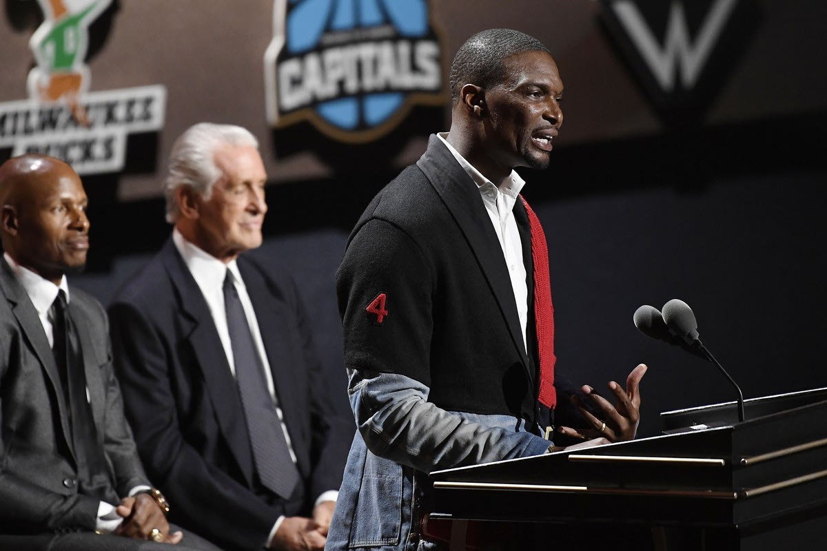 Ο Κρις Μπος είδε τους ΛεΜπρόν Τζέιμς και Ντουέιν Γουέιντ να βρίσκονται στον χώρο για να τον τιμήσουν, αναφέρθηκε στον Κόμπι Μπράιαντ που “αποτέλεσε έμπνευση για την γενιά μου” και θυμήθηκε τον Πατ Ράιλι και ένα δακτυλίδι πρωταθλητή που του έδωσε ο Πρόεδρος των Χιτ μέχρι να κατακτήσει ένα με το Μαϊάμι. Ένα δακτυλίδι που του το επέστρεψε στην τελετή, αφού με το Μαϊάμι κατέκτησε δύο πρωταθλήματα.