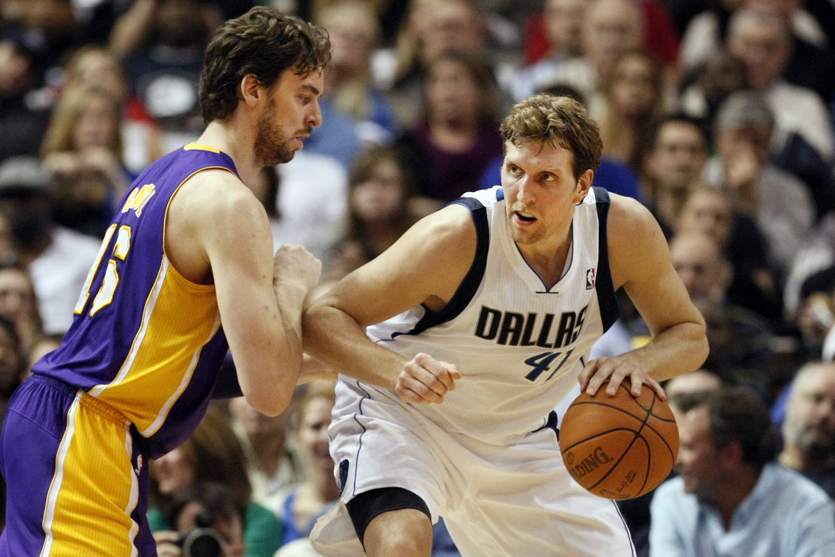 Ο Ντιρκ Νοβίτσκι και ο Πάου Γκασόλ από τα χρόνια των Μάβερικς με τους Λέικερς AP Photo/Brandon Wade