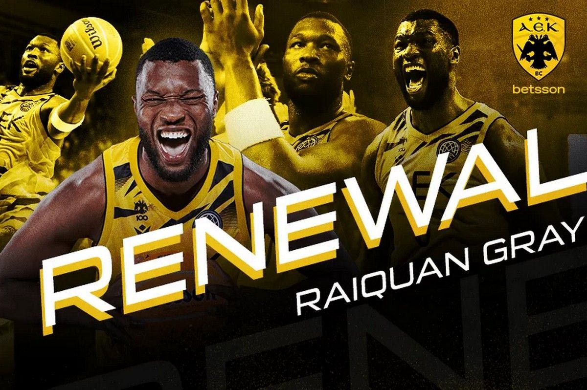 “Η ΑΕΚ Betsson BC BC ανακοινώνει, ότι ο ΡαϊΚουάν Γκρέι (RaiQuan Gray, 26 χρ., 2μ.01) υπέγραψε σήμερα (01/08) νέο συμβόλαιο συνεργασίας με τη «Βασίλισσα» έως το τέλος της περιόδου 2025-2026.