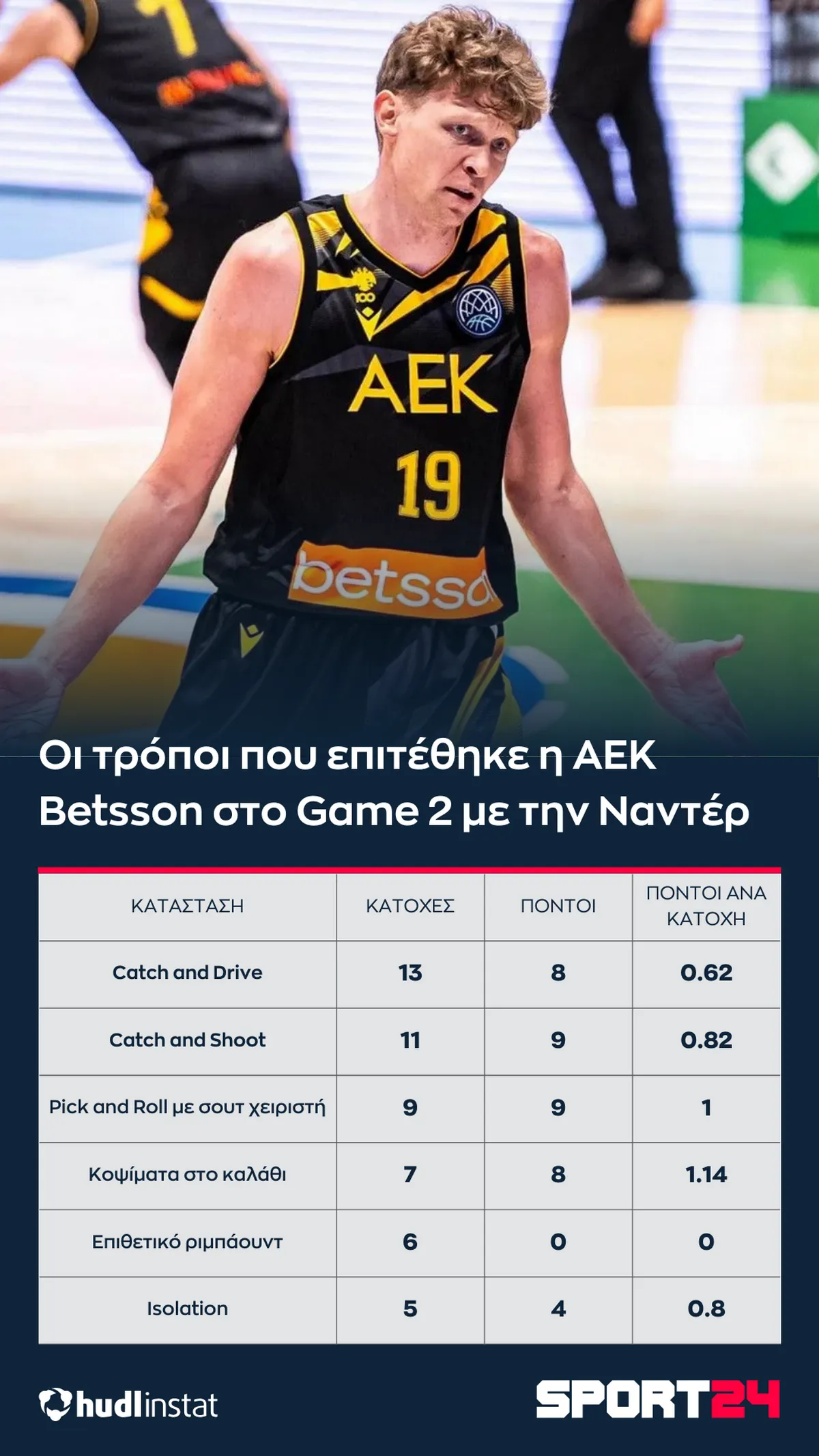 Το SPORT24 αναλύει με την βοήθεια του Hudl Instat την εικόνα της ΑΕΚ Betsson στο Game 2 της σειράς.