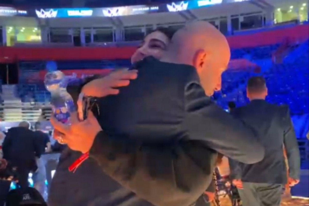 Δείτε τα VIDEO με τον Βασίλη Σπανούλη να αγκαλιάζει την σύζυγό του, Ολυμπία Χοψονίδου, μετά την παραλαβή του βραβείου του "Προπονητή της Χρονιάς του Basketball Champions League", καθώς και με τα παιδιά του στην συνέχεια.
