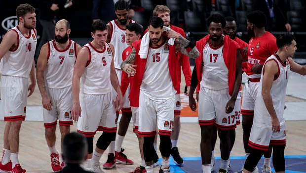 Οι παίκτες του Ολυμπιακού απογοητευμένοι μετά από την ήττα από την Αναντολού Εφές