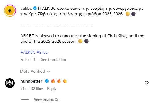 Ο Κέντρικ Ναν αντέδρασε στην ανάρτηση του Κρις Σίλβα και της ΑΕΚ για την έναρξη της συνεργασίας τους. Ο σούπερσταρ του Παναθηναϊκού AKTOR και το νέο μεταγραφικό απόκτημα της Ένωσης συνυπήρξαν στους Μαϊάμι Χιτ.