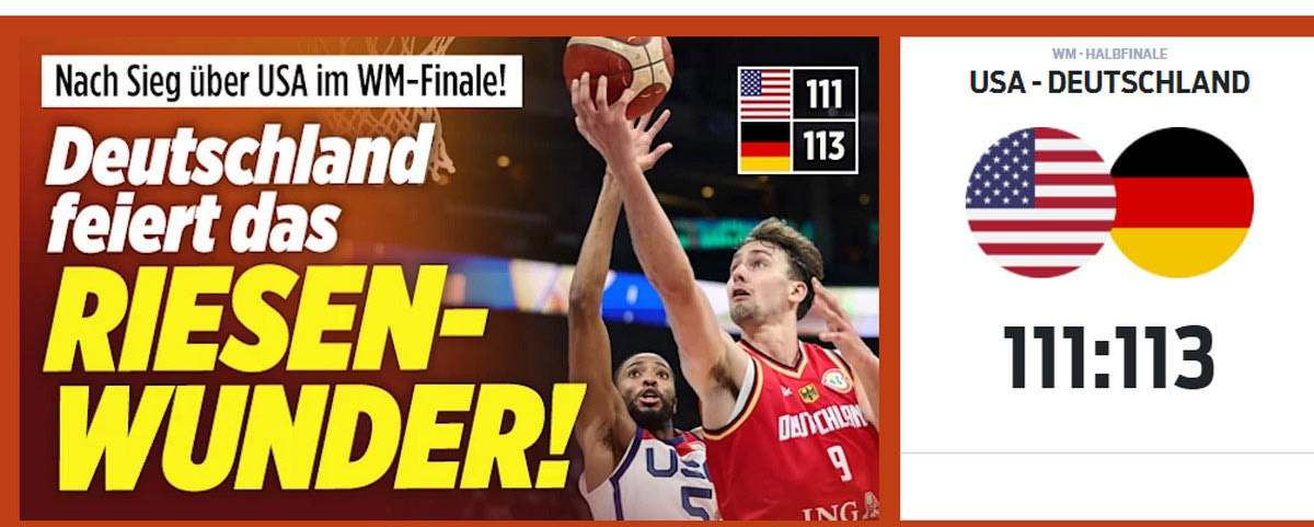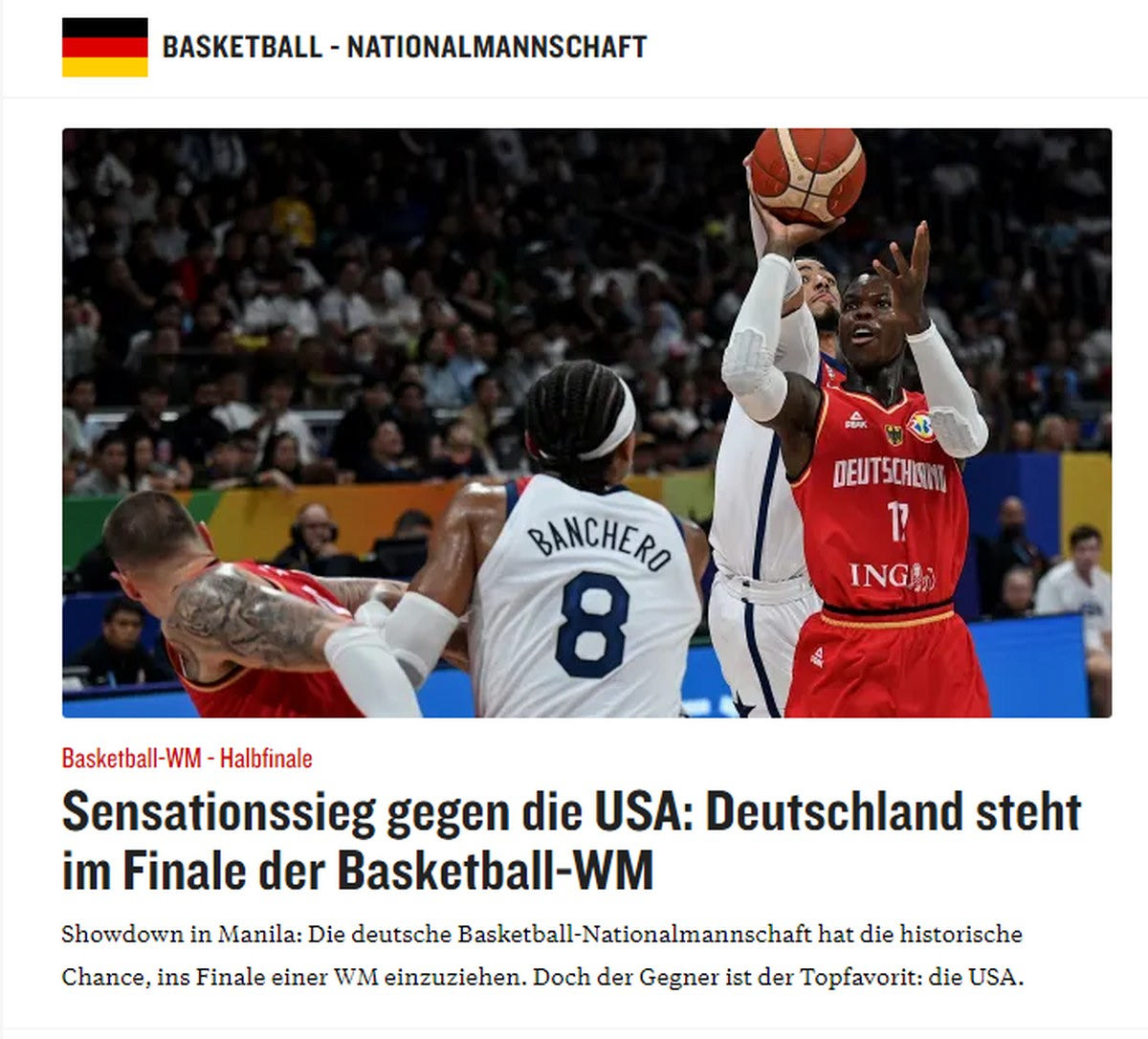 “Εντυπωσιακή νίκη απέναντι στις ΗΠΑ: Η Γερμανία βρίσκεται στον τελικό του Παγκοσμίου Κυπέλλου Μπάσκετ” γράφει το Kicker.