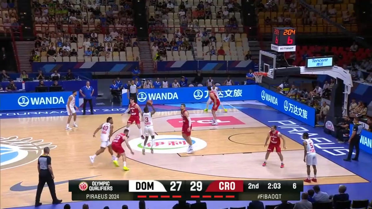 Οι Κροάτες δεν φοβούνται να δώσουν το σουτ στο Pick and Roll, βάζοντας τον Ίβιτσα Ζούμπατς να αμυνθεί παίζοντας Drop (μένοντας πολύ πίσω, δίνοντας το σουτ) ή Flat (όπου είναι λίγο πιο ψηλά, αλλά και πάλι δίνει το σουτ). Ιδού ένα παράδειγμα από τον χθεσινό (6/7) ημιτελικό με την Δομινικανή Δημοκρατία: