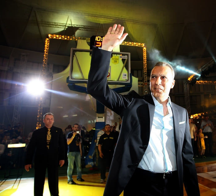 Ενώ για το γεγονός ότι η σημερινή εκδήλωση ουσιαστικά άργησε 18 χρόνια είπε: « Καλύτερα αργά παρά ποτέ», και πρόσθεσε: « Επειδή το μπάσκετ είναι ομαδικό σπορ και κανείς δεν μπορεί να διακριθεί μόνος του θέλω να πω ένα μεγάλο ευχαριστώ σε όλους όσους με βοήθησαν αλλά περισσότερο μας έδωσε φτερά ο κόσμος μας», για να κερδίσει και πάλι την αποθέωση.