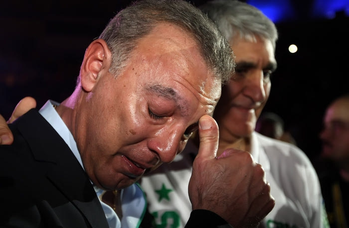 Η στιγμή της εισόδου του πρώην τεχνικού του Παναθηναϊκού Ζέλικο Ομπράντοβιτς που δήλωσε για την παρουσία του: ” Είμαι ευτυχής που είμαι σε αυτήν την γιορτή», ενώ για το μαρκάρισμα του Γκάλη τόνισε : «Προσπαθούσαμε να παίξουμε άμυνα απέναντί του“.