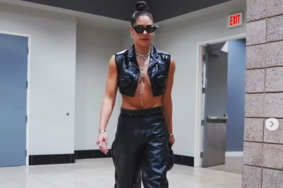 Η 29χρονη γκαρντ των Λας Βέγκας Έισιζ προκάλεσε εντύπωση με το δερμάτινο σύνολο, με το οποίο εμφανίστηκε στο γήπεδο.