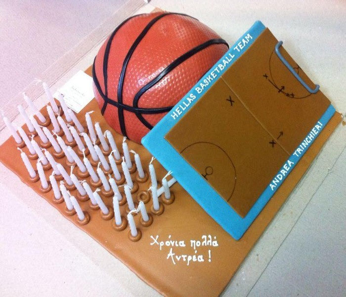 Το δώρο του; Μία εντυπωσιακή τούρτα με μία μπάλα μπάσκετ και το απαραίτητο μπλοκάκι για τις σημειώσεις του.