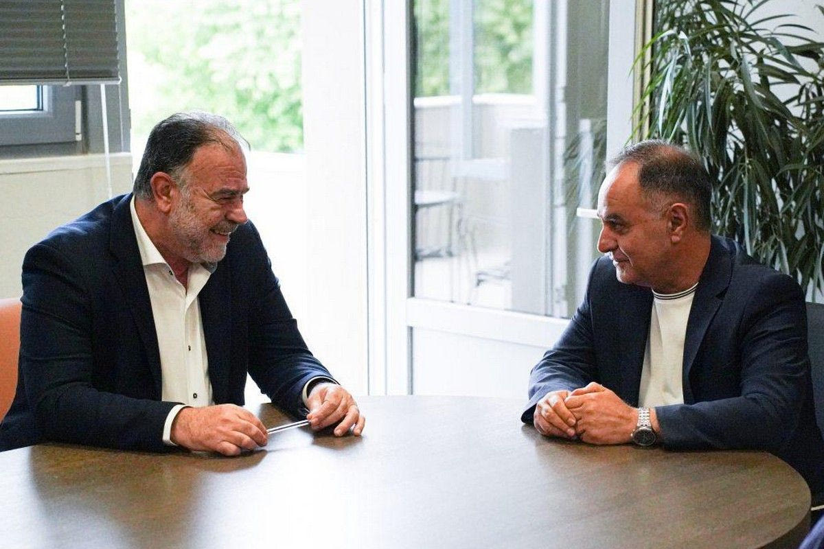 Ο αντιπρόεδρος της ομοσπονδίας Μπάμπης Μαρκάκης με τον Δήμαρχο Καρδίτσας, Βασίλη Τσιάκο. ΕΟΚ