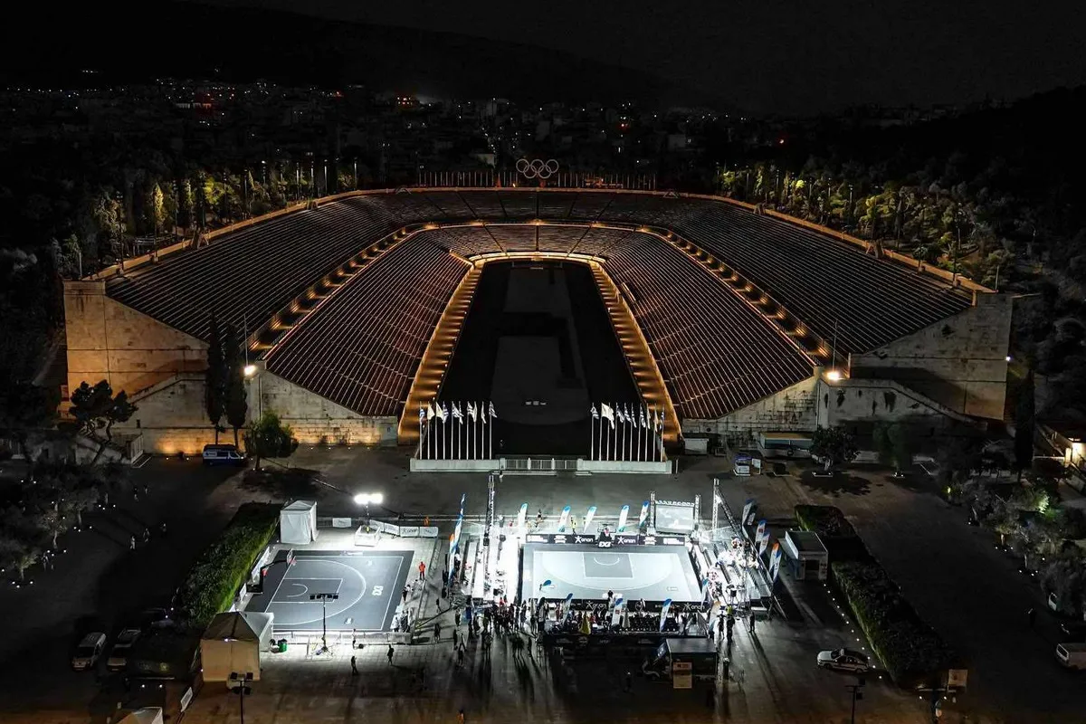 Η φαντασμαγορική εικόνα του φωτισμένου Παναθηναϊκού Σταδίου από την πρώτη μέρα των τελικών του 3×3 Master Series ΟΠΑΠ