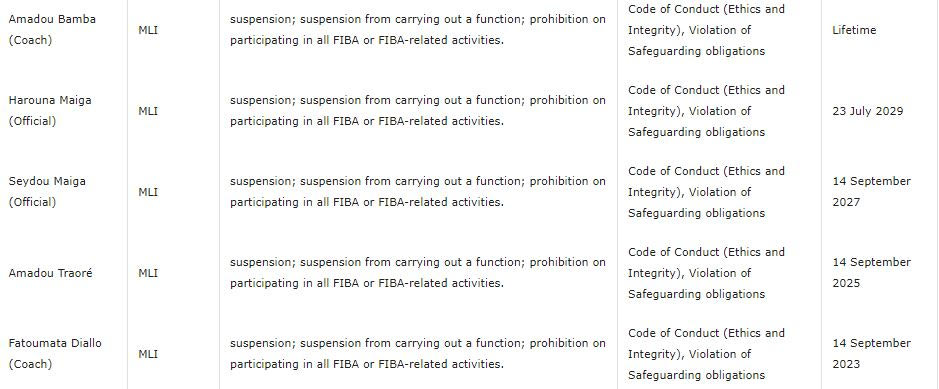 Φως, σε μία υπόθεση που είχε βγει στην επιφάνεια το καλοκαίρι του 2021, έριξε μετά από δύο χρόνια ερευνών η FIBA. Ο λόγος για το σκάνδαλο που είχε ξεσπάσει στο Μάλι, αναφορικά με σειρά περιστατικών σεξουαλικής κακοποίησης αθλητριών από το 1999 έως και το 2011, για το οποίο τιμωρήθηκαν τελικά πέντε άτομα.