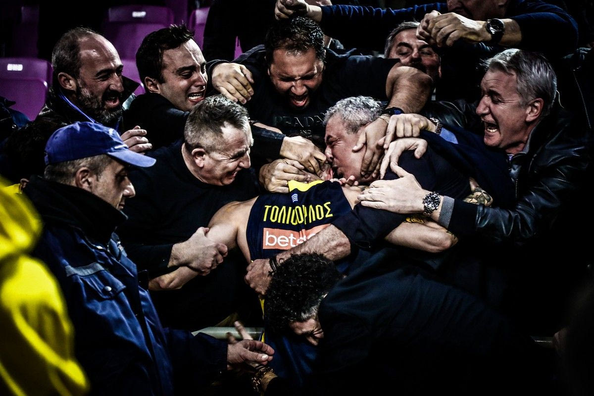 Η συγκλονιστική φωτογραφία της Eurokinissi αποτύπωσε την εκδήλωση λατρείας και αγάπης στον Τολιόπουλο, ο οποίος ήταν ήρωας της πρόκρισης του Άρη.