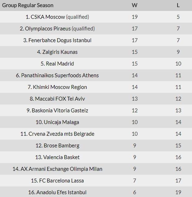 Η κατάταξη και το πρόγραμμα της EuroLeague (25 αγ.)