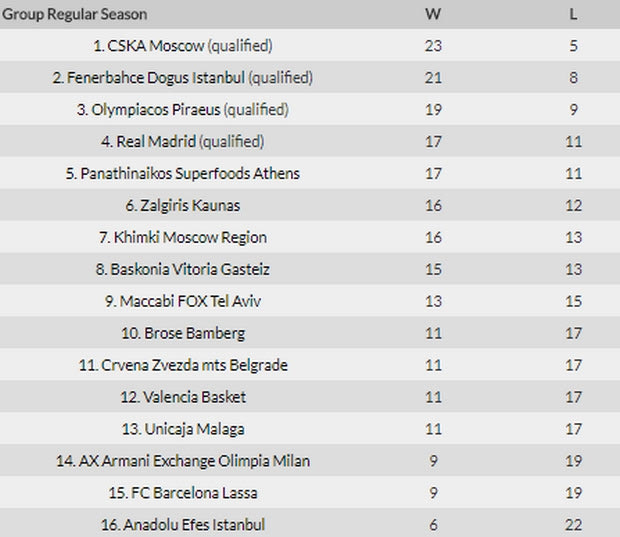 Η κατάταξη της EuroLeague μετά το “διπλό” της Φενέρμπαχτσε επί της Χίμκι