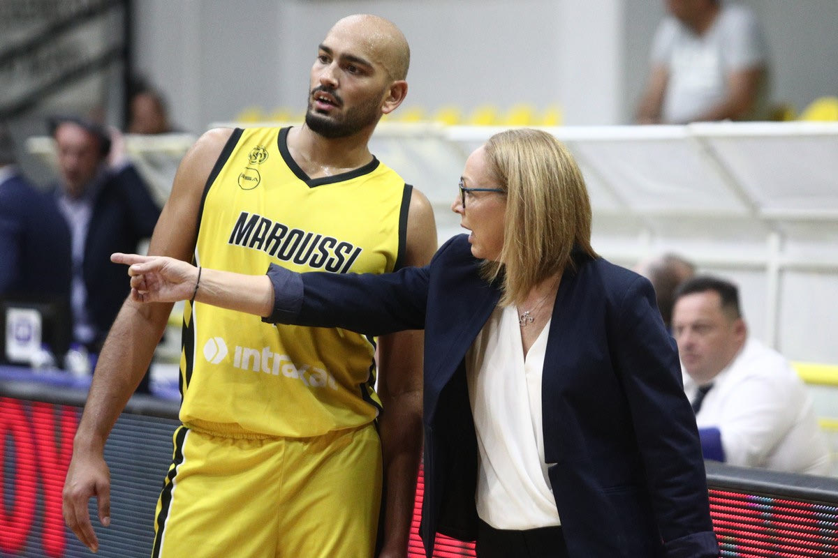 Ακόμα μία κατάκτηση για τη Λία Γκουζίνη, που έκλεισε ως head coach τον αγώνα Μαρούσι - ΠΑΟΚ μετά από την αποβολή του συζύγου της, Γιώργου Σκαραφίγκα.