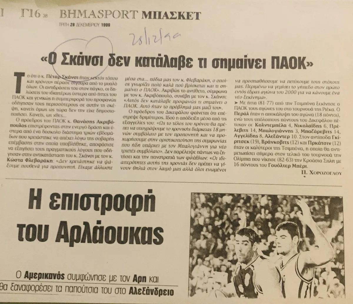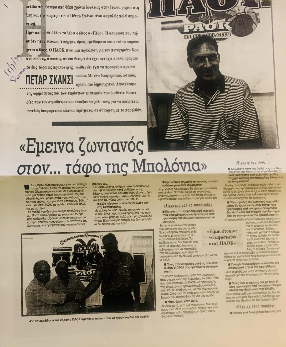 Έφυγε λοιπόν από τη ζωή ο Σκάνσι αφήνοντας πίσω του μια μεγάλη μπασκετική ιστορία που, όπως μου είχε εξομολογηθεί ο ίδιος σε μια συνέντευξη μας, στο περιθώριο του Final Four του 1990 στη Σαραγόσα (στο οποίο η Γιουγκοπλάστικα πέτυχε τον δεύτερο θρίαμβο της) «έχει ως μαύρη κηλίδα την Ελλάδα»!