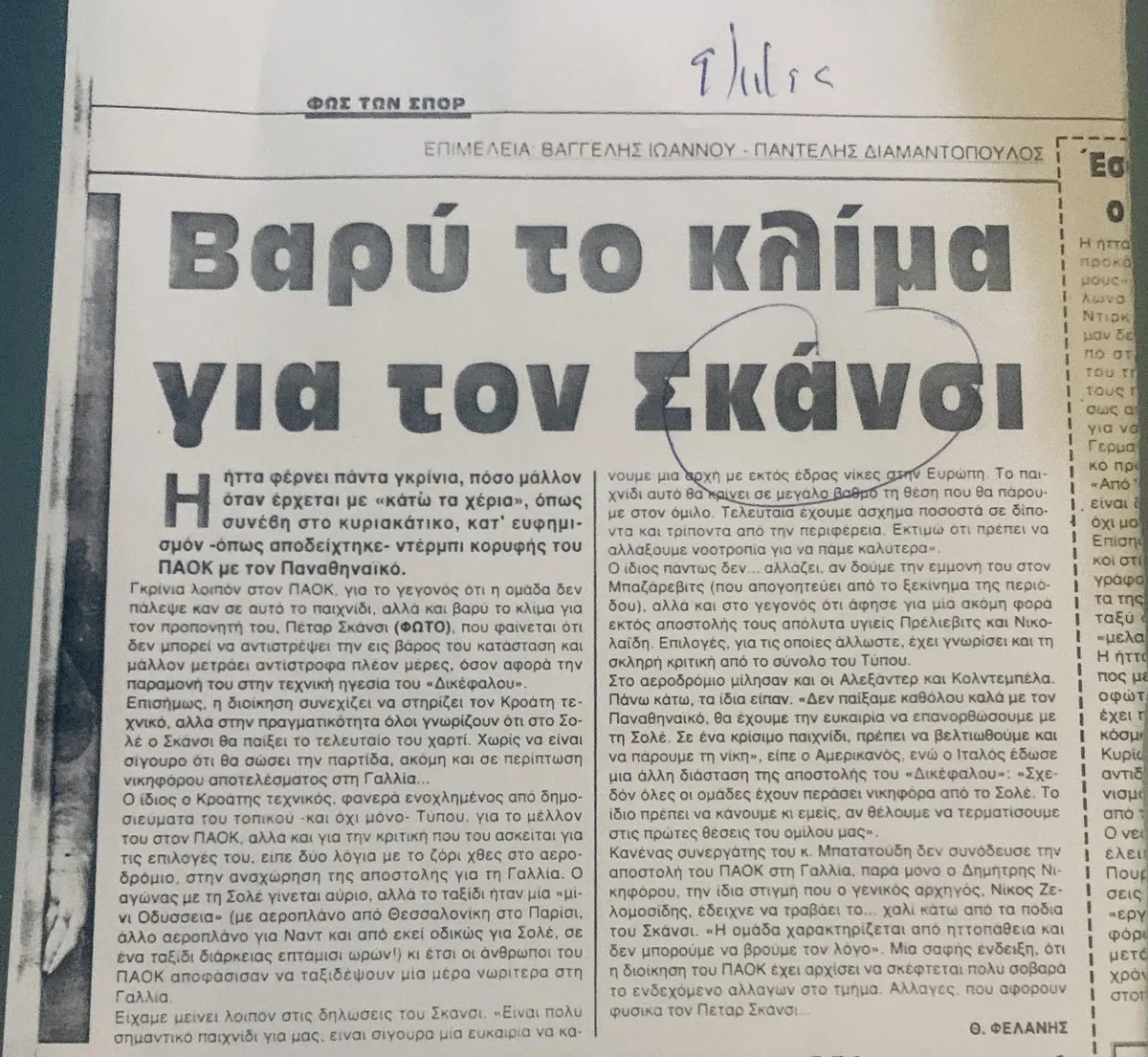 Τότε ο Σκάνσι βρισκόταν στον πάγκο της Μπενετόν Τρεβίζο και απέναντι του στεκόταν ο Κώστας Πετρόπουλος ο οποίος, όντας παρών και στα δυο χουνιέρα του ’79, αποδείχθηκε η Νέμεσις του Κροάτη προπονητή.
