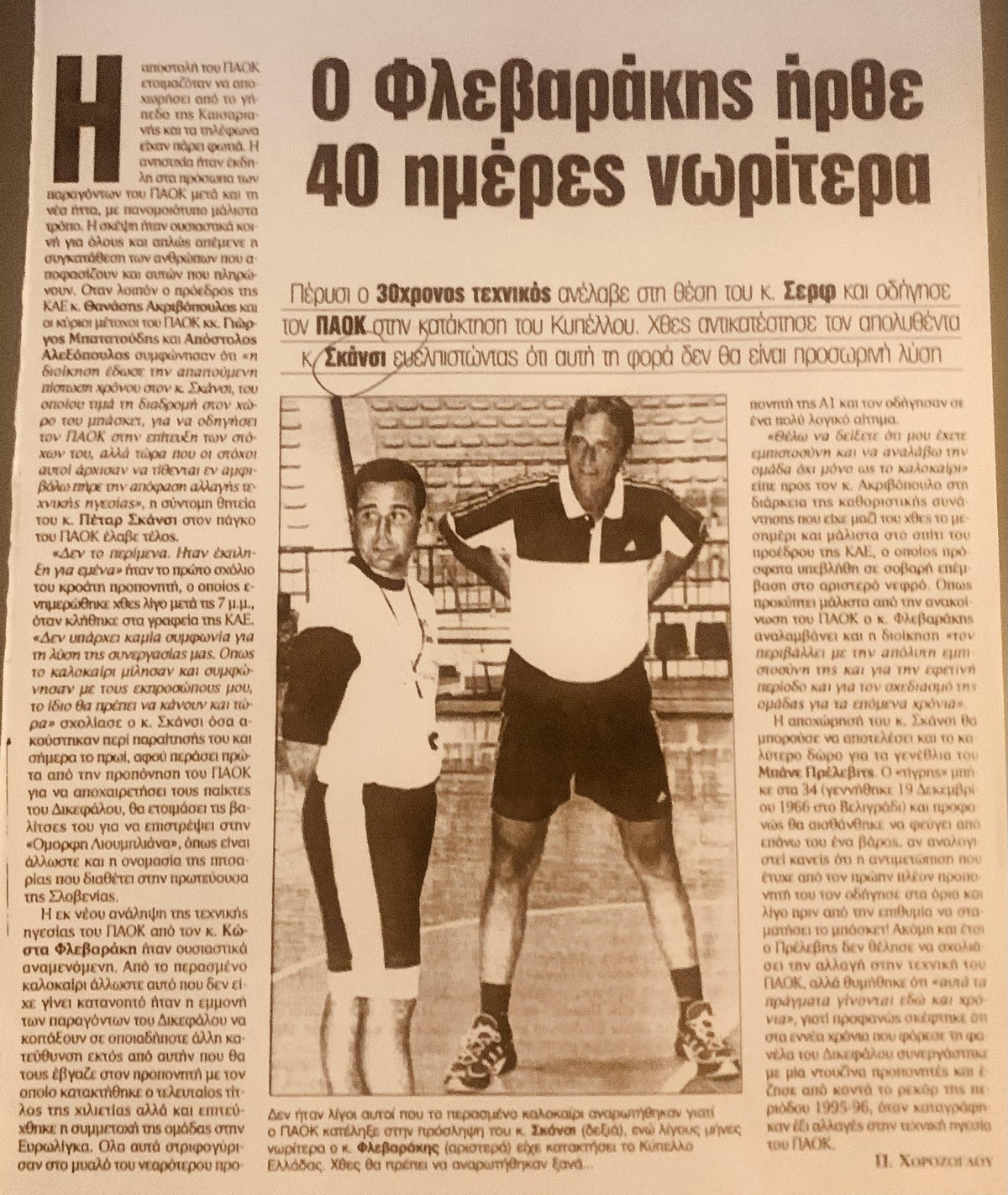 Οι ελληνικοί δαίμονες εξακολούθησαν να κατατρύχουν τον Πέρο ο οποίος δεν φτούρησε στον πάγκο του Δικεφάλου του Βορρά με τον Θανάση Ακριβόπουλο, τον Γιώργο Μπατατούδη και τον Απόστολο Αλεξόπουλο να τον σχολάνε μόλις στις 19 Δεκεμβρίου και να αναθέτουν ξανά την τεχνική ηγεσία στον Φλεβαράκη, ο οποίος είχε στο πλάι του τον Γιάννη Σφαιρόπουλο.