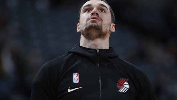 Portland Trail Blazers forward Mario Hezonja (44) in the first half of an NBA basketball game Tuesday, Feb. 4, 2020, in Denver. (AP Photo/David Zalubowski)