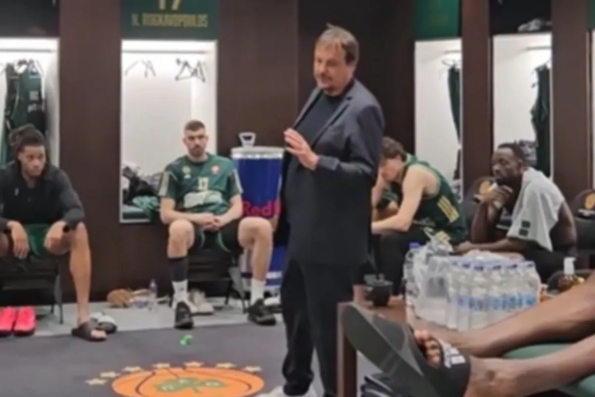 Ο Παναθηναϊκός AKTOR επικράτησε της Βίρτους Μπολόνια στο Telekom Center Athens και ο Εργκίν Αταμάν έκανε ομιλία στους παίκτες του μετά το τέλος του αγώνα στα αποδυτήρια.