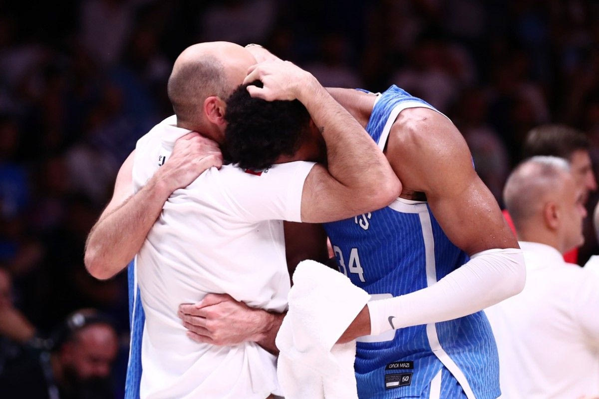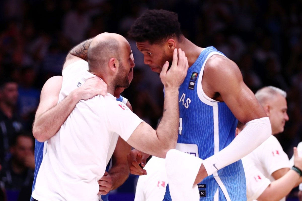 Την αγκαλιά του Βασίλη Σπανούλη και του Γιάννη Αντετοκούνμπο, με τους δύο άνδρες να είναι συναισθηματικά φορτισμένοοι μετά την επιτυχία της πρόκρισης στο μεγάλο αθλητικό ραντεβού του καλοκαιριού.