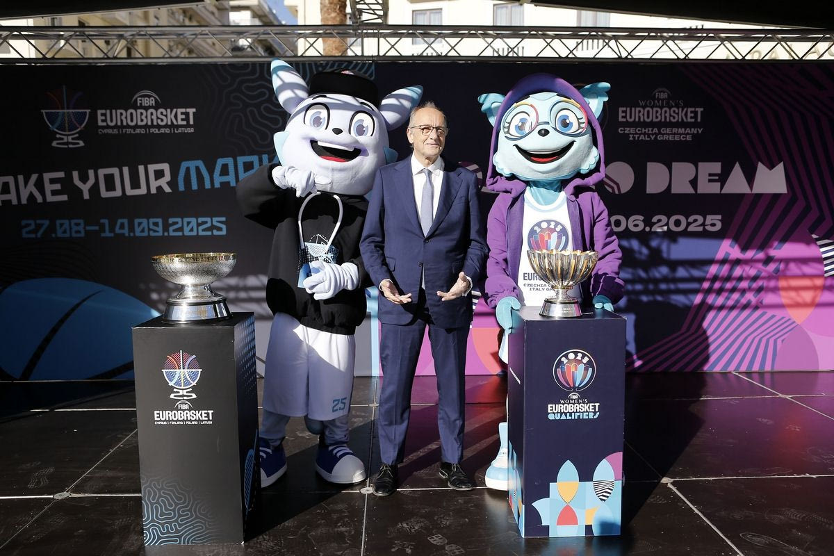 Η πλατεία Αριστοτέλους φόρεσε τα καλά της υποδεχόμενη τα τρόπαια του Ευρωμπάσκετ Ανδρών και του Ευρωμπάσκετ Γυναικών. Εκατοντάδες φίλοι της πορτοκαλί μπάλας, μικροί και μεγάλοι, είχαν την ευκαιρία να φωτογραφηθούν με τα «ιερά δισκοπότηρα», αλλά και με θρύλους του αθλήματος, όπως επίσης και με τις δύο μασκότ των μεγάλων διοργανώσεων, την Fiona και τον Marky Mark.