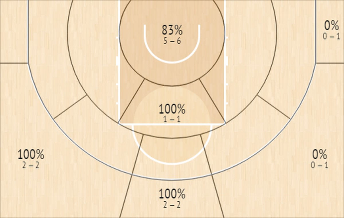 Ο Βούλγαρος φόργουορντ πραγματοποίησε ακόμα μία εμφάνιση επιπέδου MVP, ολοκληρώνοντας τον αγώνα με 28 πόντους με 6/7 δίποντα, 4/6 τρίποντα, 4/5 βολές, 13 ριμπάουντ, 1 ασίστ και 1 λάθος σε 32 λεπτά συμμετοχής. Και χρειάστηκε μόλις μία ντρίμπλα για να τα καταφέρει! Ιδού και το Shot Chart του: