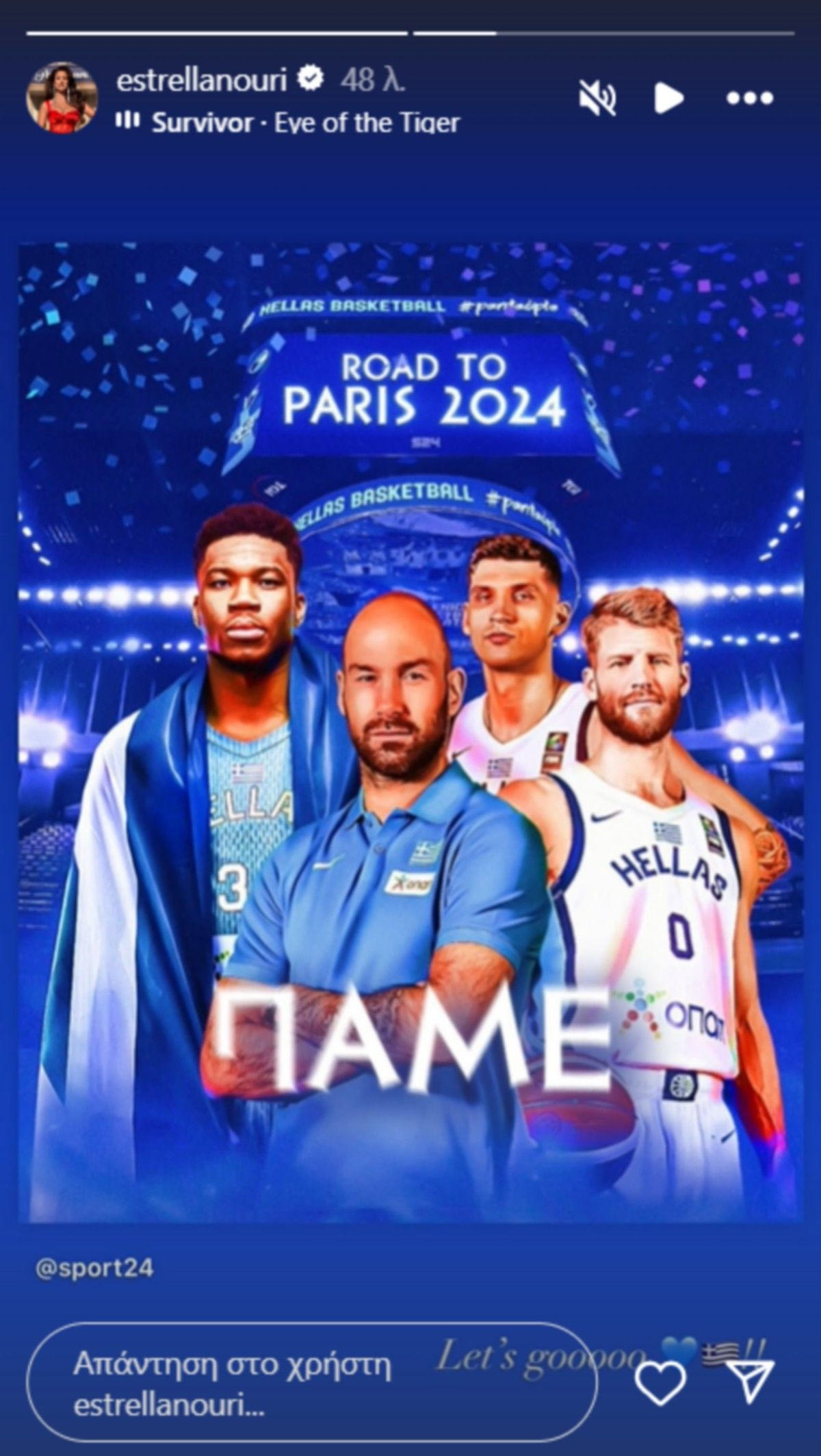 Η σύντροφος του Τόμας Γουόκαπ, Εστρέλα Νούρι, ανέβασε στον λογαριασμό της στο Instagram το εντυπωσιακό εικαστικό του SPORT24 για το Προολυμπιακό τουρνουά του ΣΕΦ.